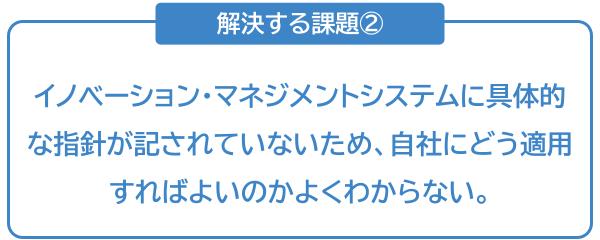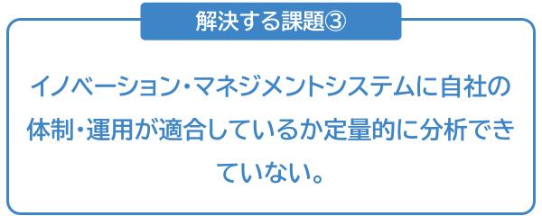 本手法では研究開発者の現場の声を取り入れることにより、具体的指針が示されていないイノベーション・マネジメントの条文を具体化し、改善点を明確にした解析結果を提供します。