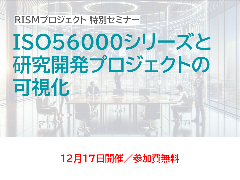 2024年8月末には、超異分野学会 大阪・関西大会において、RISMプロジェクトの成果を含めてIMSを題材にしたパネルセッションを実施いたしました。同セッションに参加された企業の方々からの高評価を受け、この度特別セミナーを実施いたします。登壇者にはRISMプロジェクトを先導してきた林田 英樹に加え、ISO56000シリーズの各規格の形成に大きな貢献をする一般社団法人 Japan Innovation Networkから松本 毅 氏を招き、話題提供を頂きます。